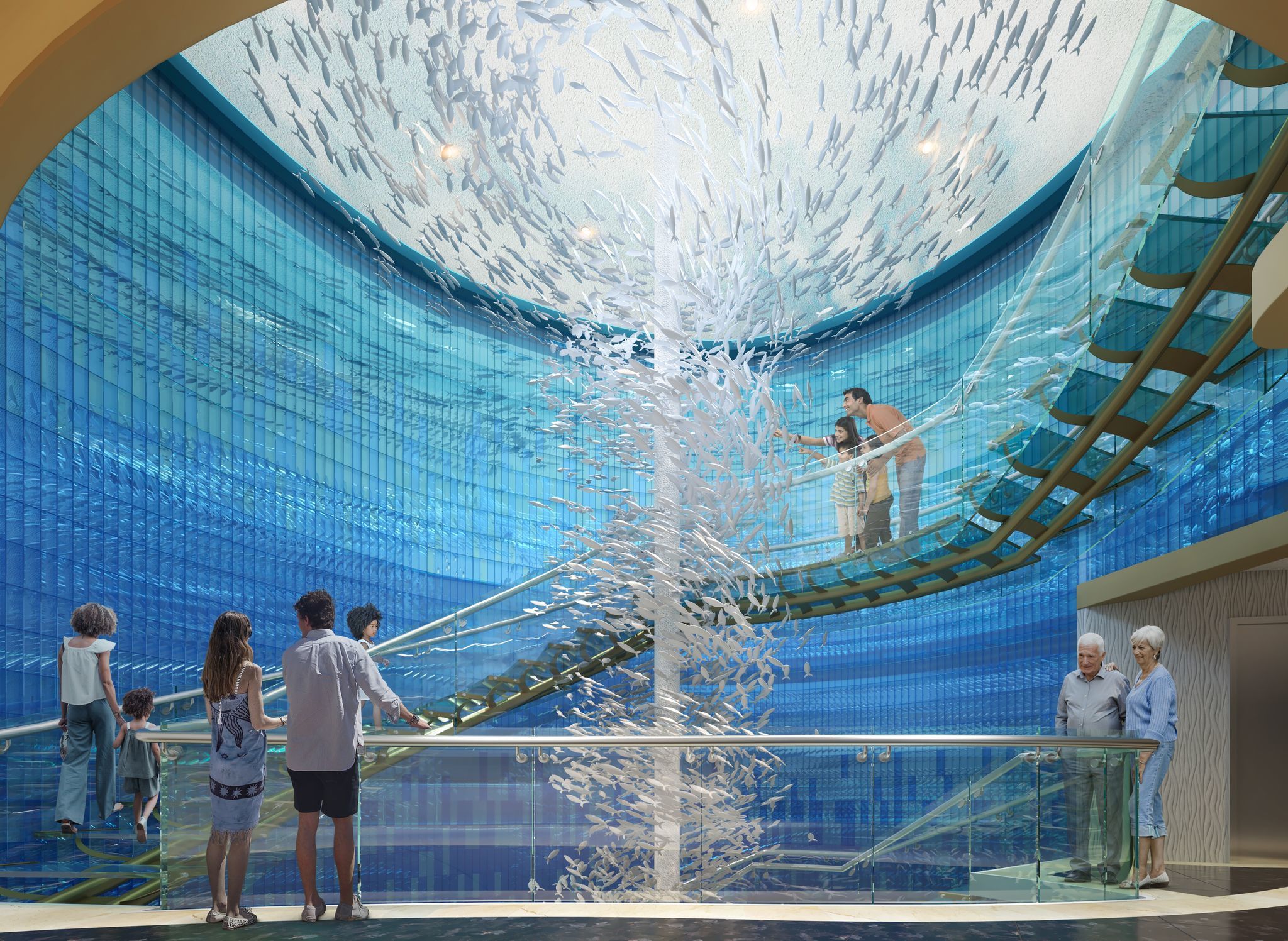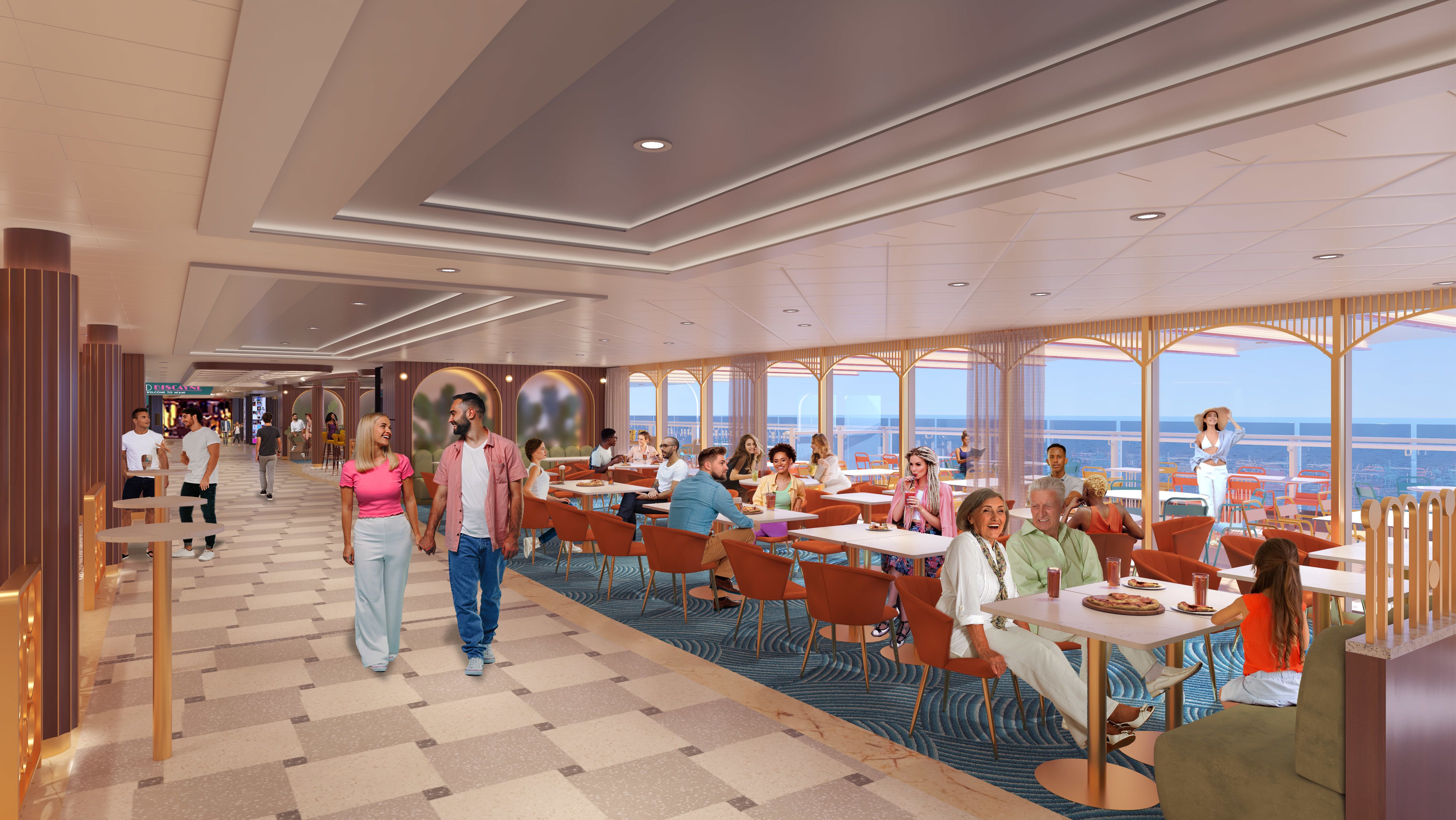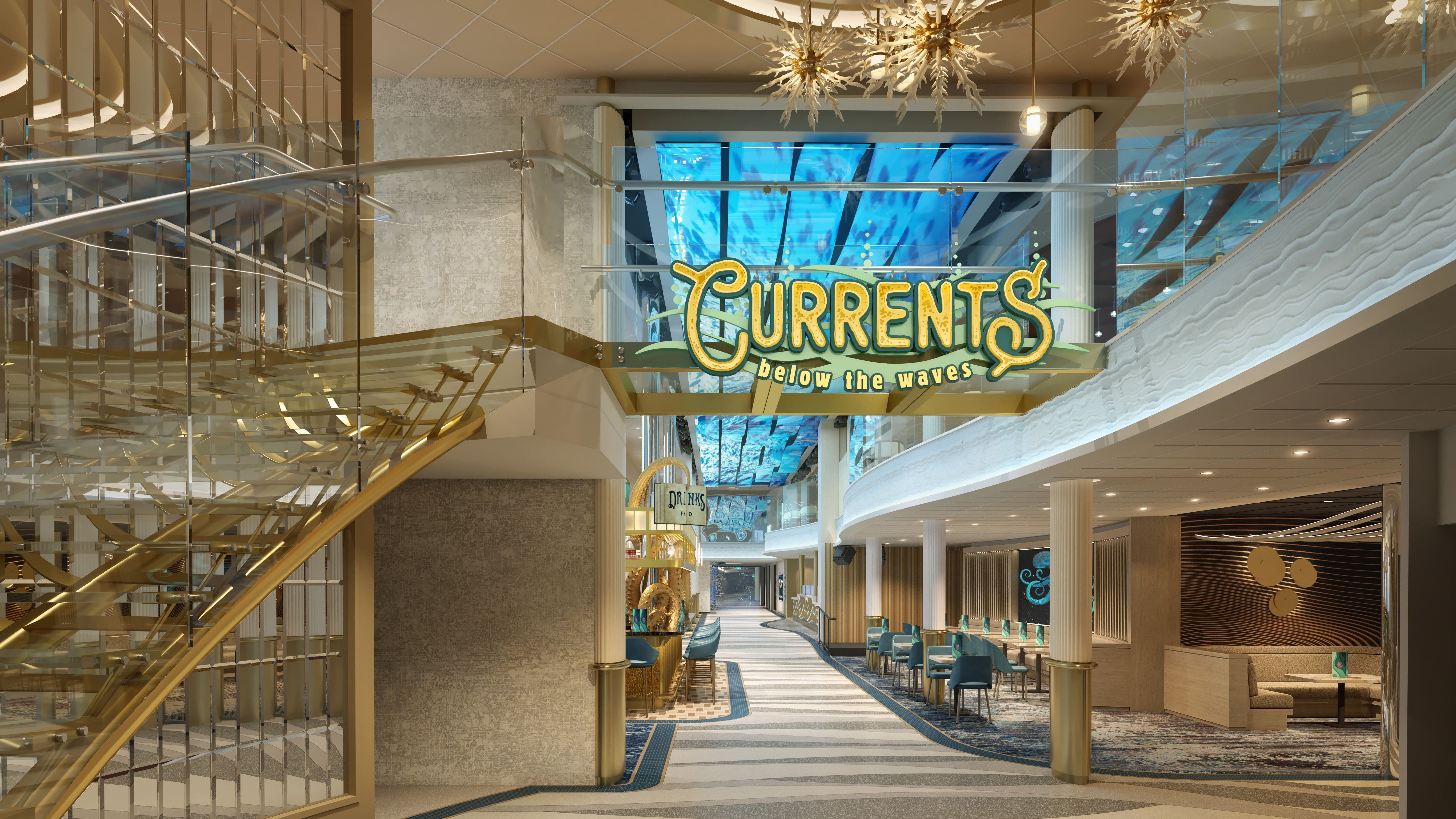 Jubilee introduces two additional outdoor-focused zones — Currents and The Shores — which expand the variety of outdoor spaces available on board. The Shores is designed as a beach-club-style environment with a more relaxed, resort-inspired feel, while Currents adds a water-themed zone that complements the existing WaterWorks aqua park.