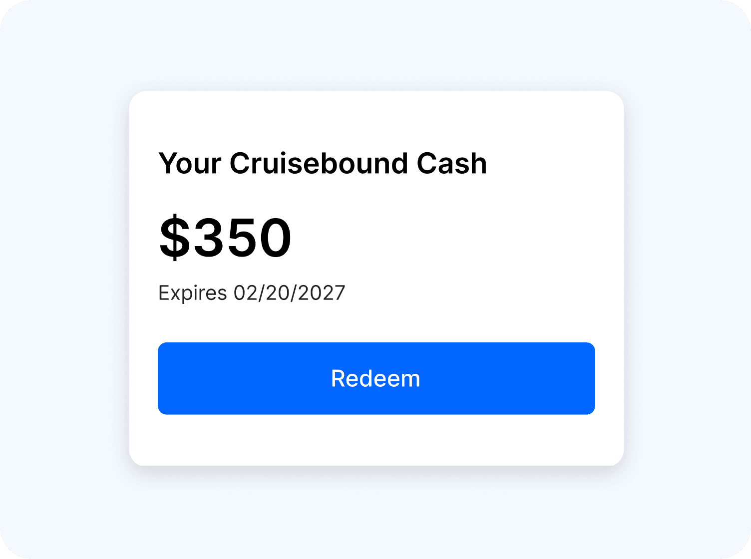 Set sail to claimYour Cruisebound Cash will be posted to your account once you set sail on your cruise